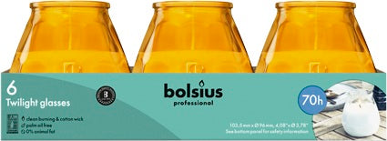 Filled candle in a coloured glass jar available in Orange, Purple, Clear, White, Fuchsia, Amber, Metallic Green, Blue and Red