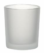 A simple candle holder. 6.5cm tall, 5.6cm top diameter, 5cm base diameter. Great with night lights or votive candles. The holder is available in a range of colours, including clear and white frost. Each colour is a clear glass holder apart from the frosted white option.