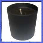 An elegant jet black candle in black glass. 10cm tall by 7cm diameter