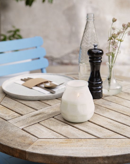 Clean burning with a cotton wick. Unscented.